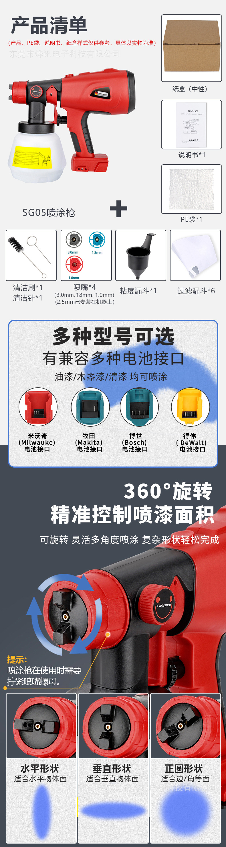Sg05スプレーガンは牧田博士のデヴォーチ・ユビなど18v電動工具リチウム電池に適用されます。