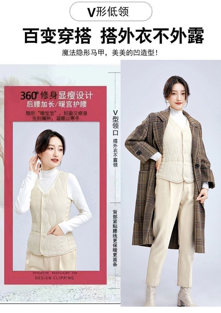 2025冬季新款加绒保暖马甲修身显瘦马夹大码百搭V领坎肩无袖内胆