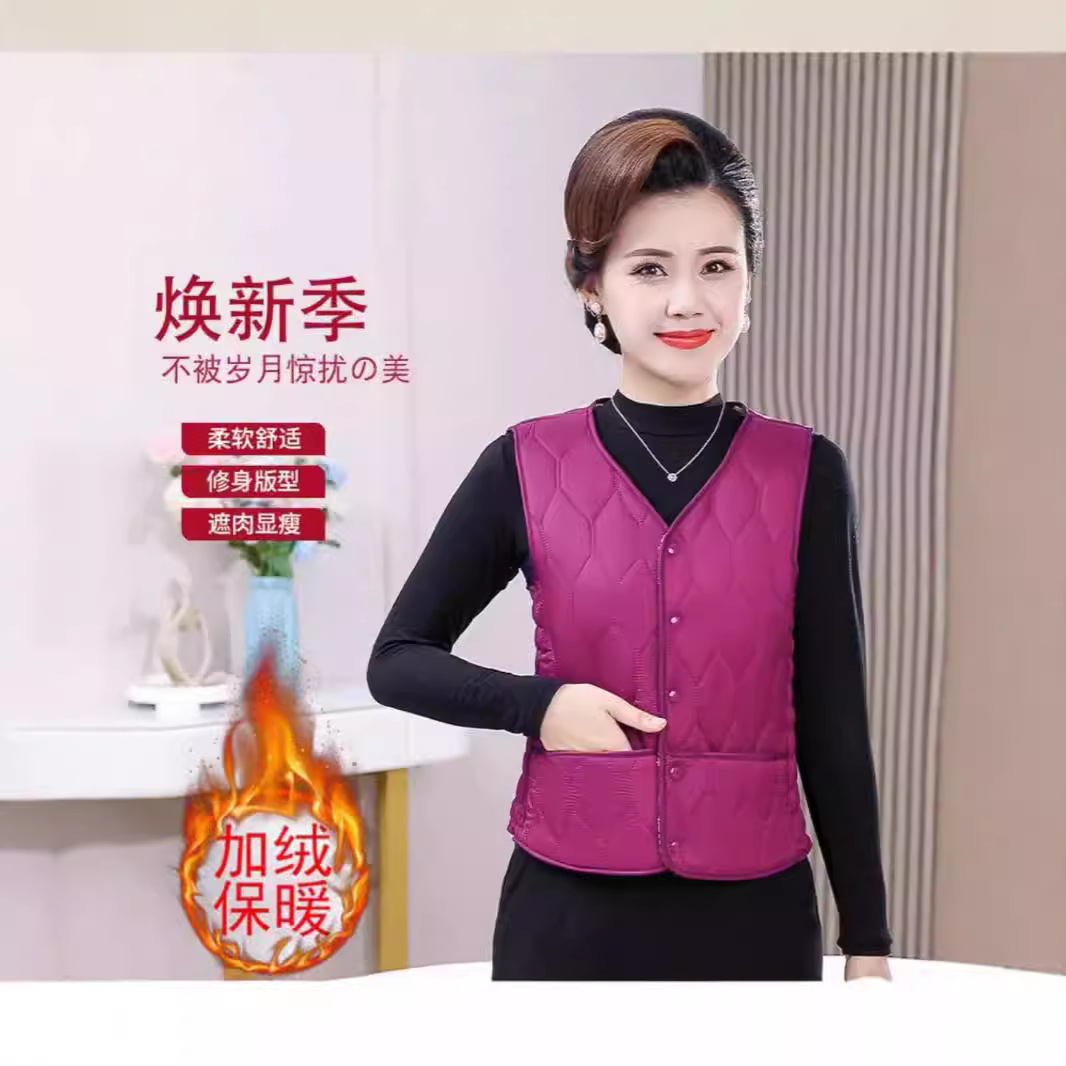 ベルベットは新しい秋冬ダウン綿馬甲女羊小毛保温ベストの中高年肌着馬が肩を挟んでいる
