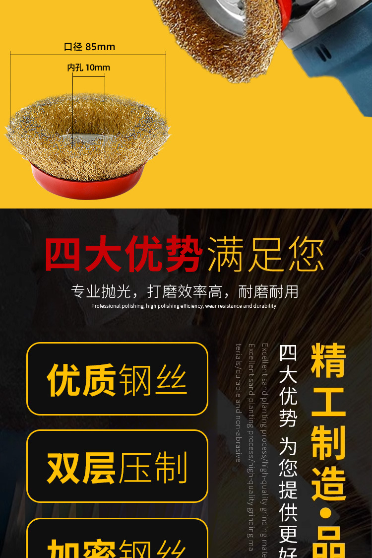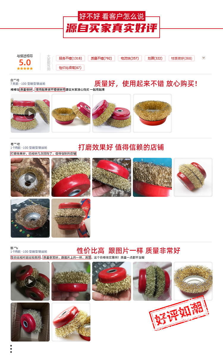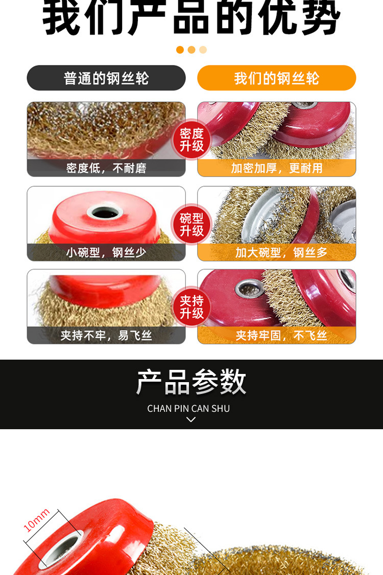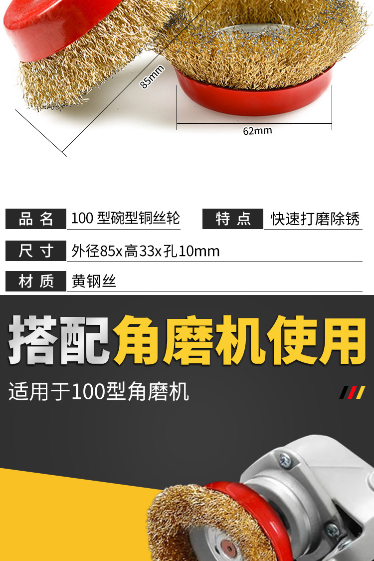厚みのある耐摩耗性赤いボウル型ワイヤーホイール 100*10 電動グラインダーワイヤーボール金属錆除去研削ワイヤー
