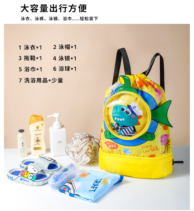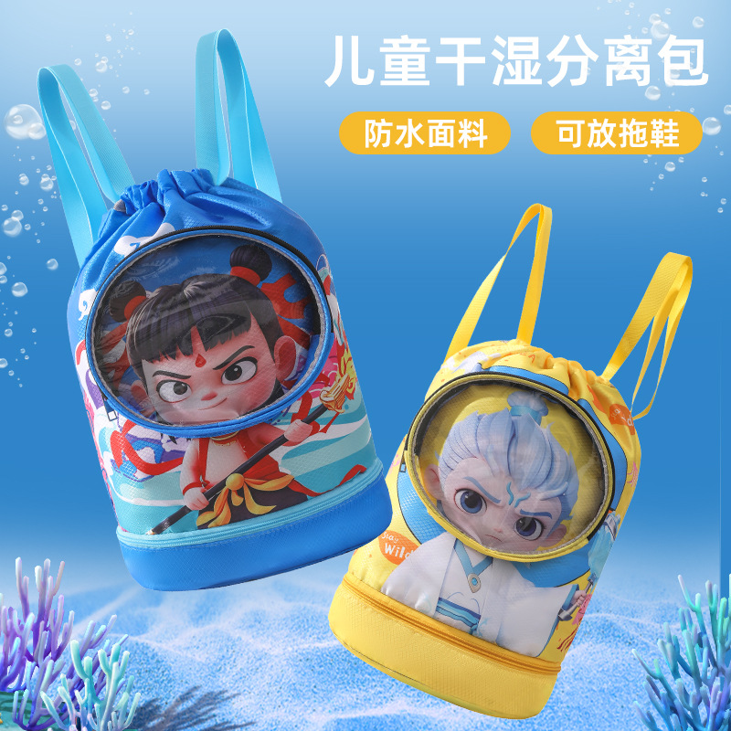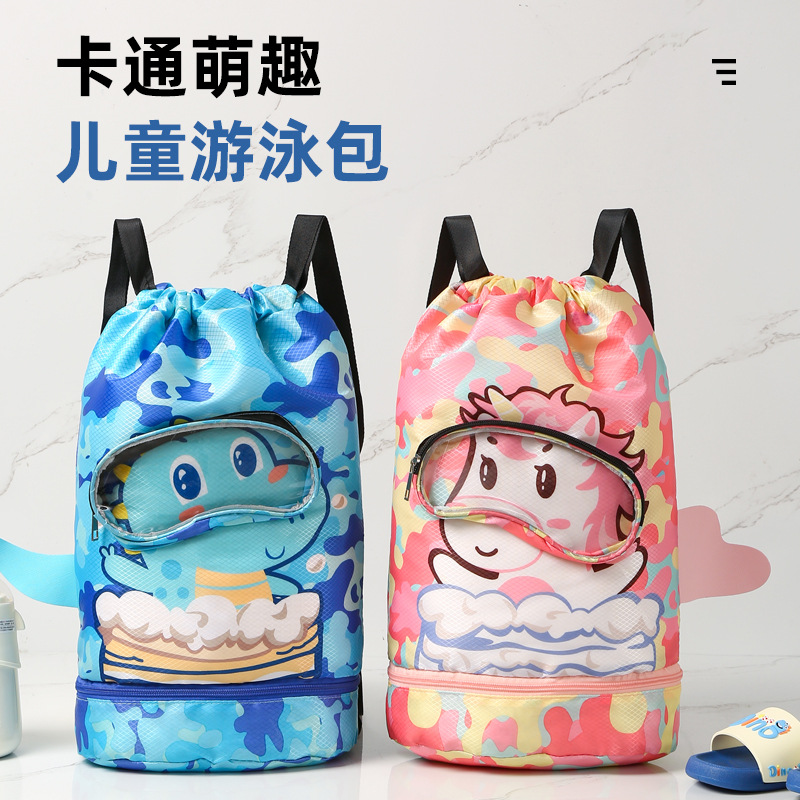 漫画子供水泳バッグ干湿分离ポータブルビーチランドセル男女子供水泳装备収纳防水バッグ