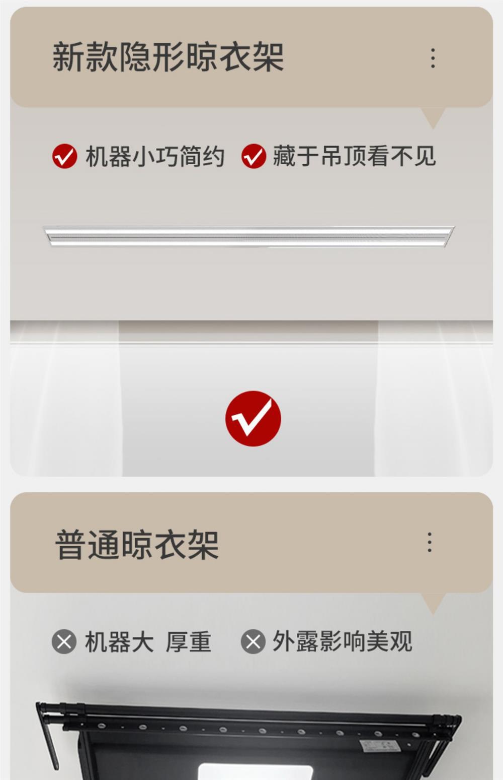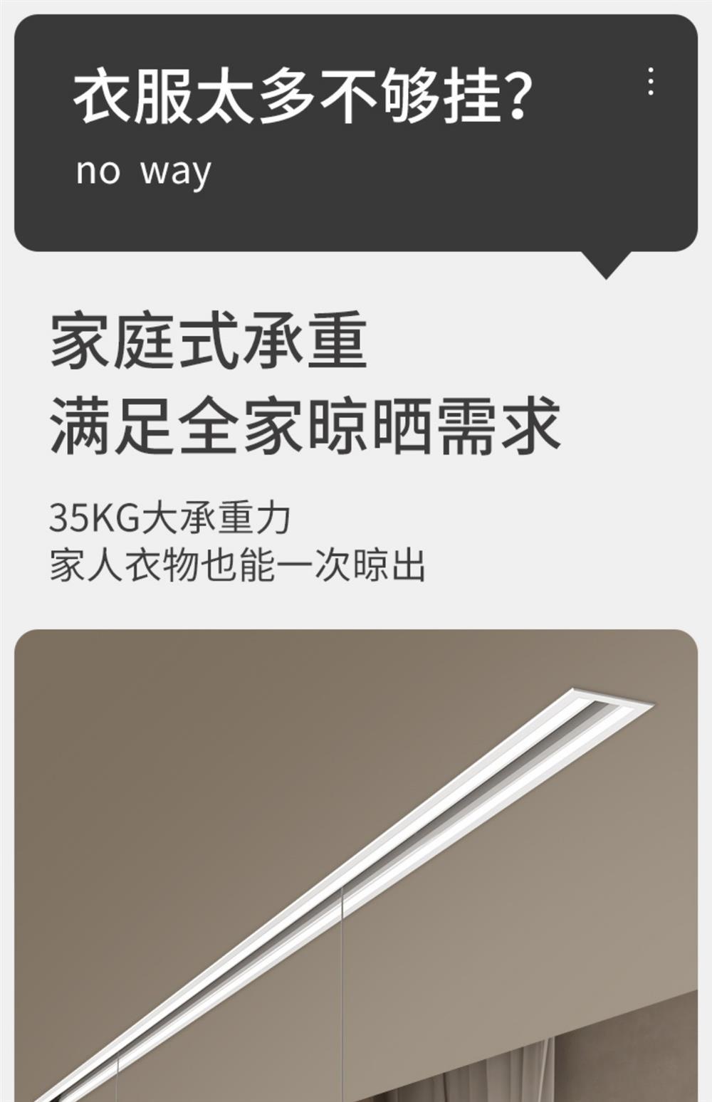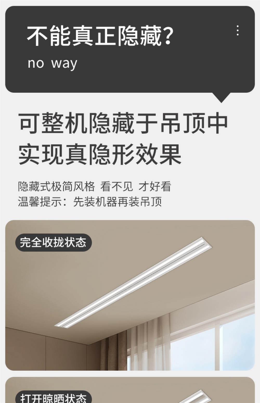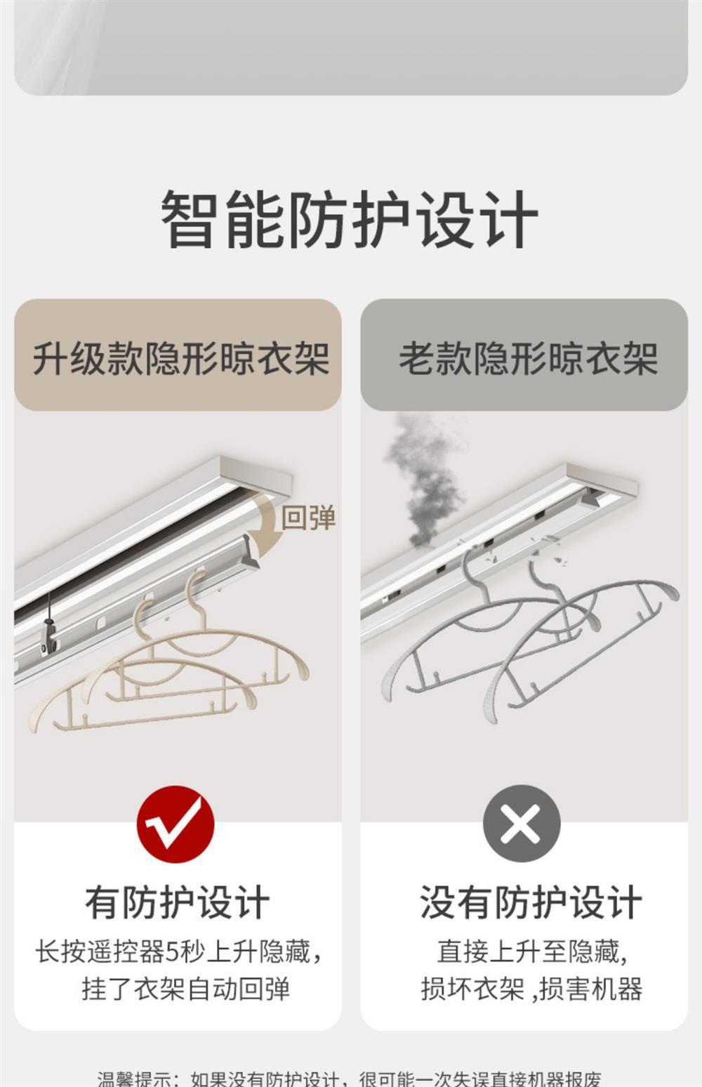 全隐形电动晾衣架升降吊顶隐藏嵌入晒衣杆家用自动阳台智能晾衣架