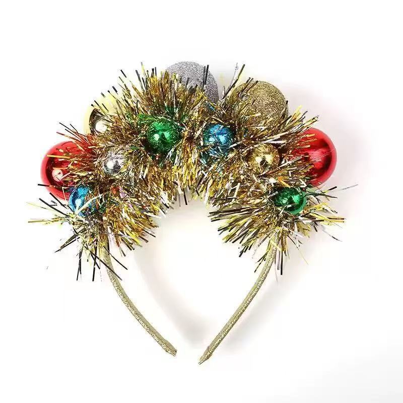 跨境圣诞节彩球金丝发箍圣诞舞台装扮发箍个性磨砂球金葱表演发饰