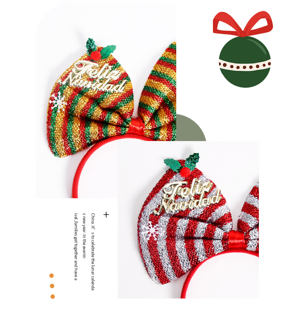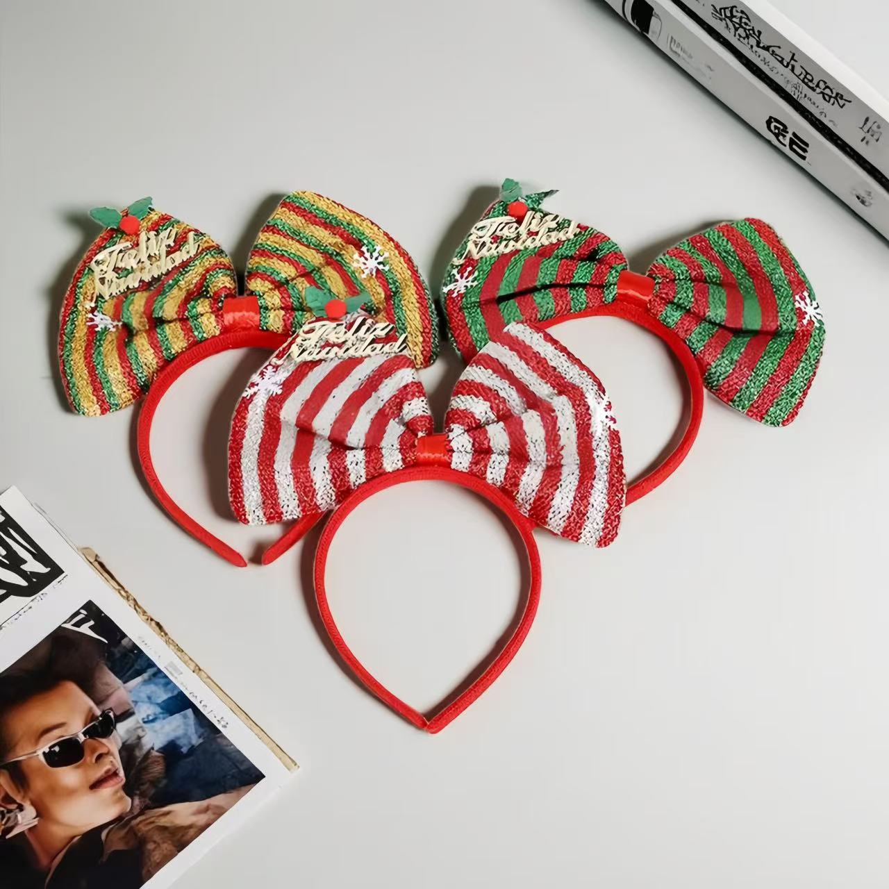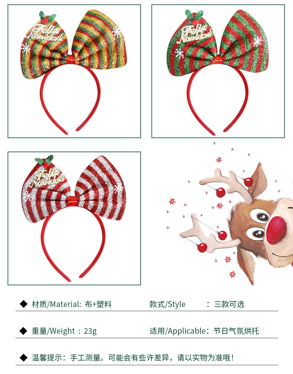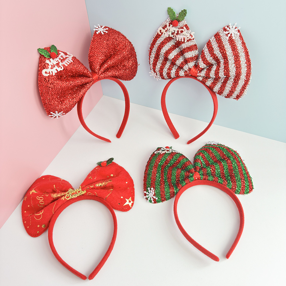 クロスボーダーAmazonクリスマスヘッドバンドリボンヘッドバンドバックルかわいい大きなリボンスパンコールクリスマスヘッドバンドヘアアクセサリー