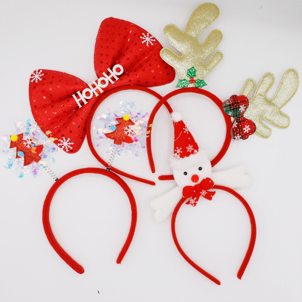 カチューシャクリスマスツリー老人かわいい髪飾り蝶結びスパンコール鹿の角の頭掛け飾りパーティー雪雪雪だるまクロスボーダー