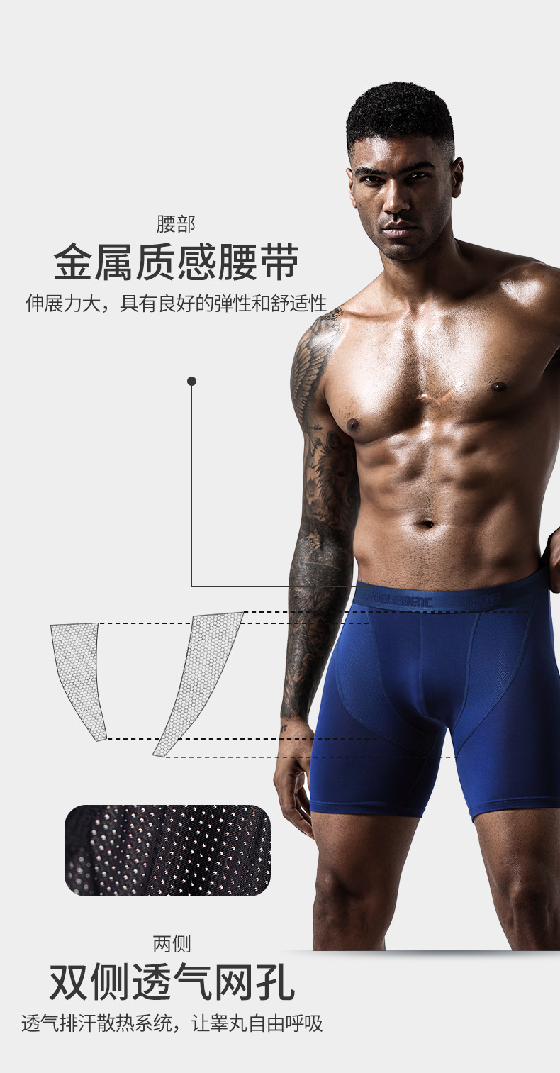 夏モーダルメンズエクストラロングスポーツ下着メンズ耐摩耗性脚四隅通気性ハイウエストプラスサイズボクサーブリーフ
