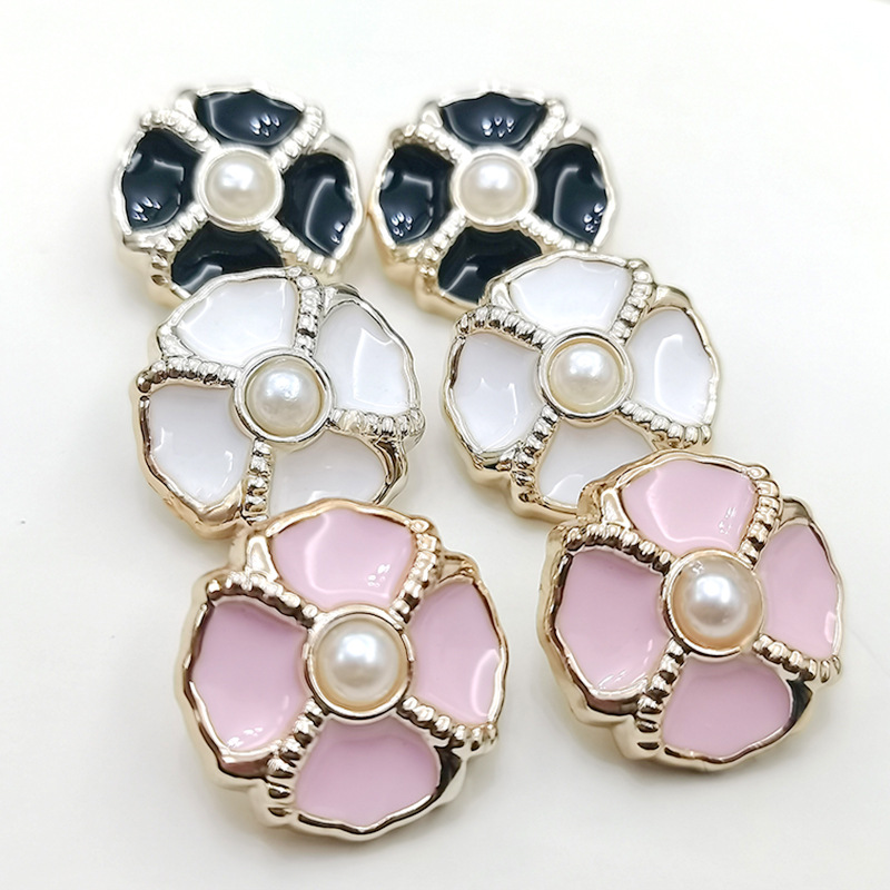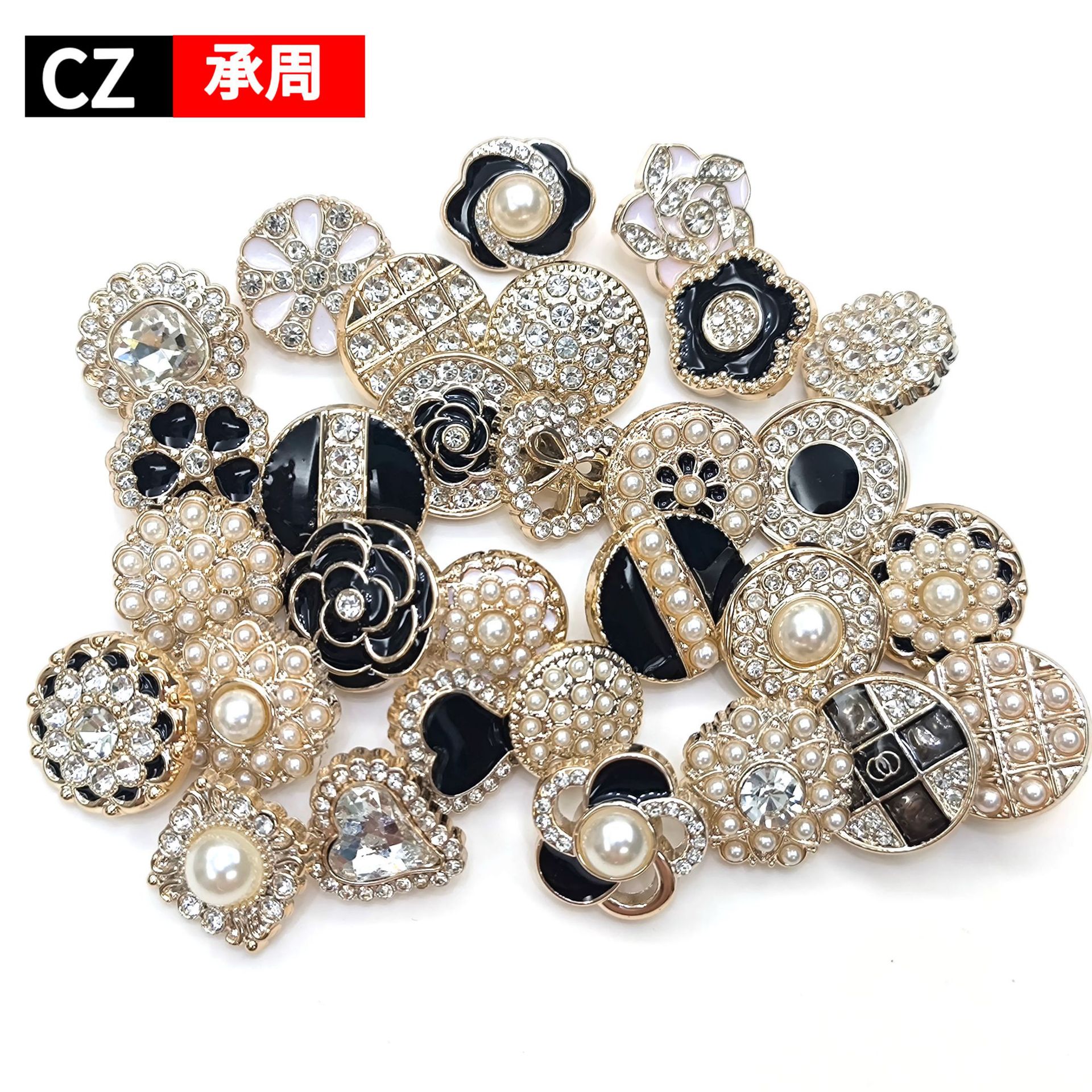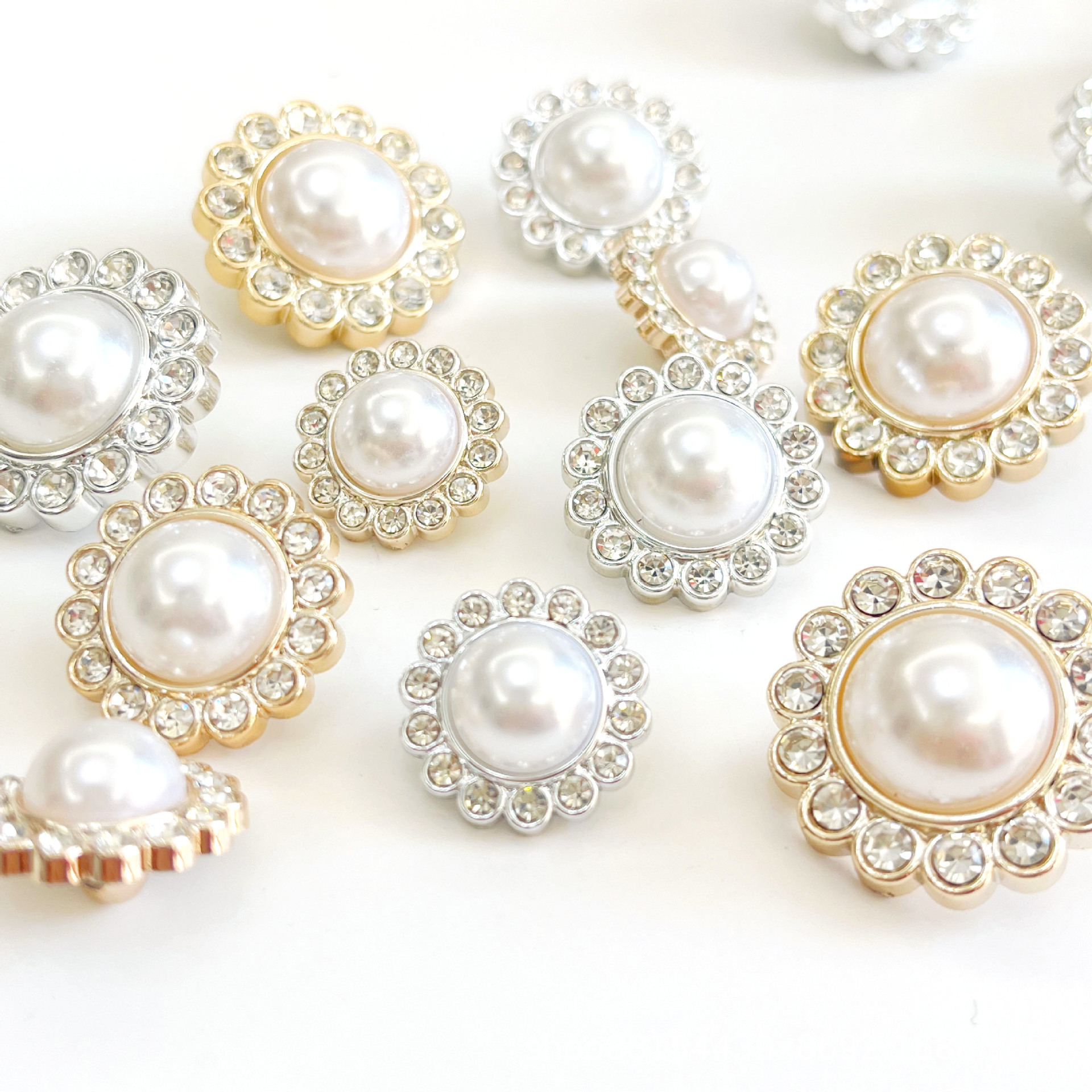 仿金属纽扣大衣辅料毛呢外套珍珠带钻塑料abs金色银色白色钮扣厂家批发直销
