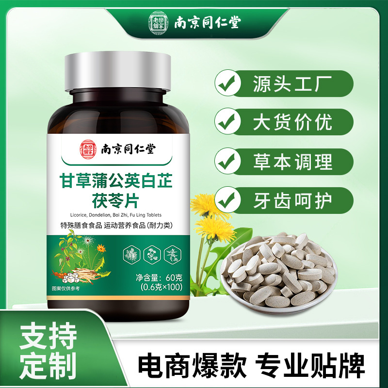 南京銅仁堂甘草、タンポポ、アンジェリカ、ポリアココス錠剤、ハーブ配合甘草ヘルスケア、卸売在庫あり