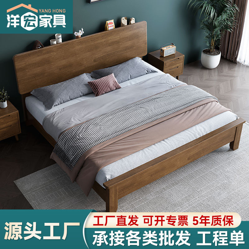 北欧全実木ベッドシングル1.2m現代シンプル寝室ベッド賃貸部屋1.8mツインマンション収納ベッド