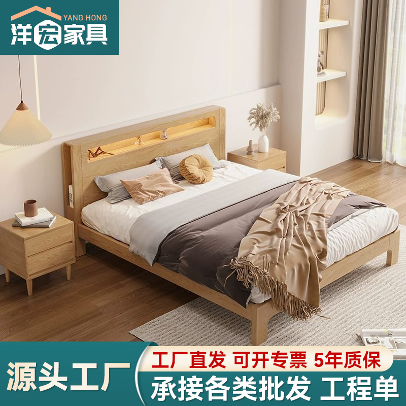 北欧白蝋木目実木床1.8m主臥現代シンプル畳骨格ツインベッドベッドなしベッドベッド