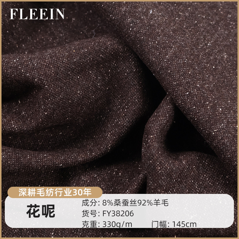 片面の8% シルクの92% ウールのイタリア式モカブラウン330g毛です。スーツのコートの毛です。