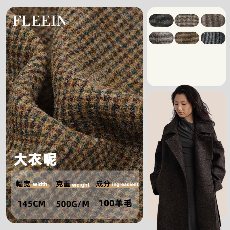 100% ウール片面小千鳥格子混色キズハリスツイードコートウール生地