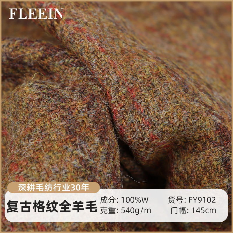 2024 新しいハリスチェック柄ウール生地オールウールツイード英国レトロウール生地