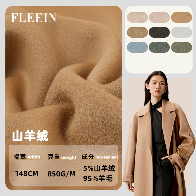 5% カシミヤ95% ウール両面毛生地2023新カシミヤ順毛コート毛生地