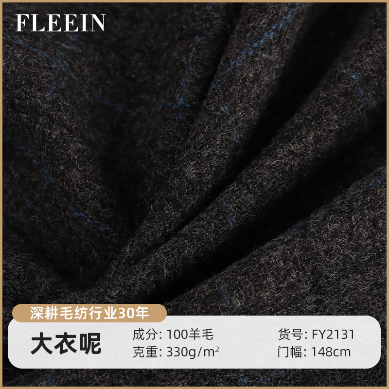 2024年の新型ファッション片面黒灰シルク雪花点人字紋ウールは、粗紡織スーツのコート生地である