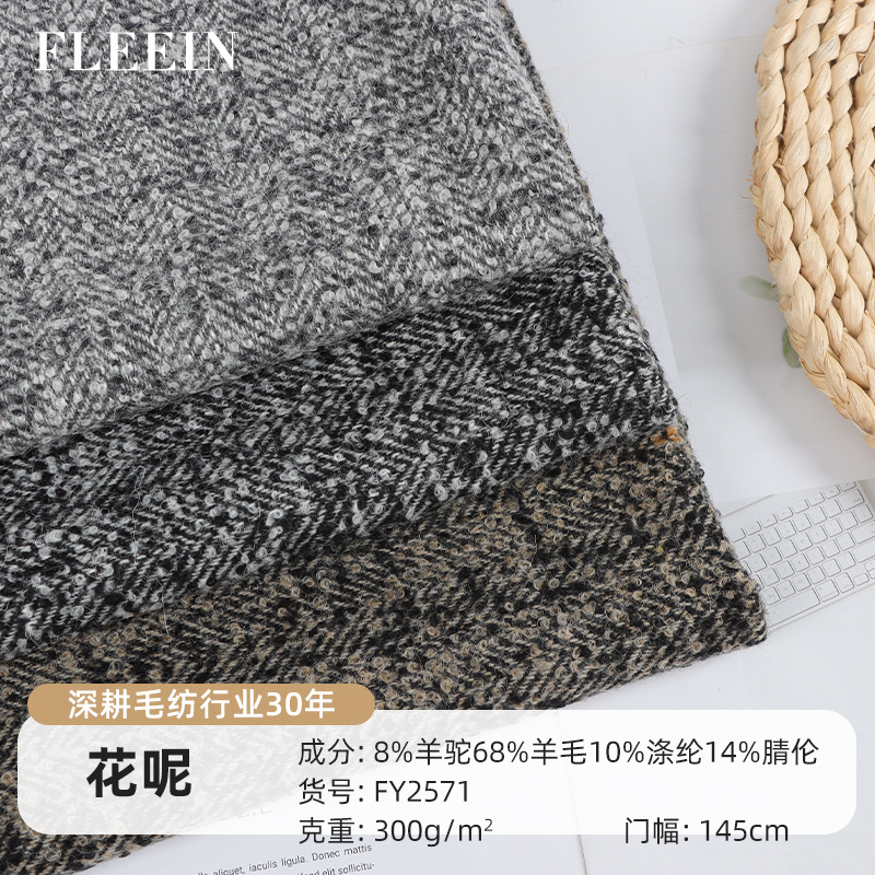 片面アルパカウール混紡輪糸人字紋花柄の粗い花の毛のコート生地