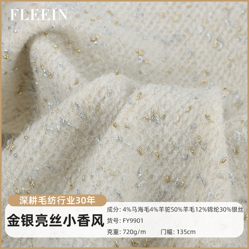 星空の魚のうろこの立体の金銀の明るいシルクの布の小さい香の風の生地の馬海の毛のラクダの毛のウールの混紡の花の顔