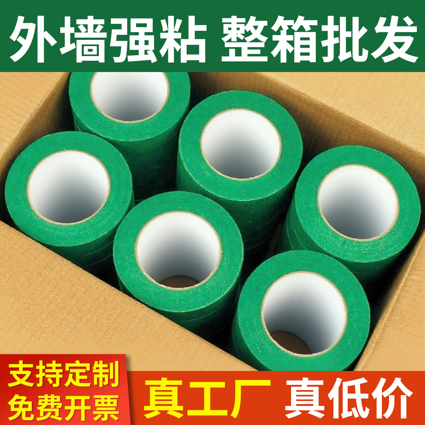 外墙高粘美纹纸胶带不留胶整箱批真石漆美缝纸胶带分色绿色美纹纸