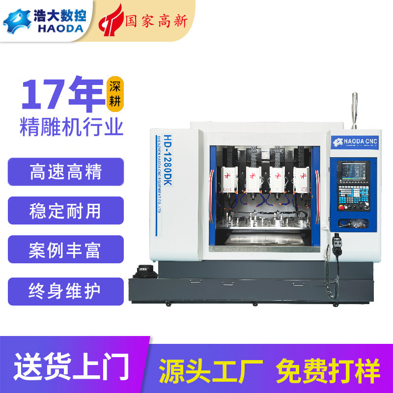 Haoda CNC 高速デュアルスピンドル連動彫刻機携帯電話構造部品レンズ工業用モデルグラファイト加工工場