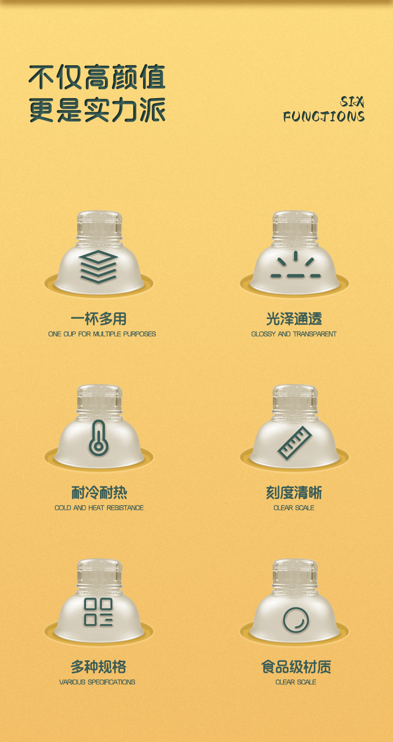 プラスチック計量カップ付きスケールミルクティー店焙煎pc厚い蓋付きスケール計量カップ多規格耐高温透明カップ
