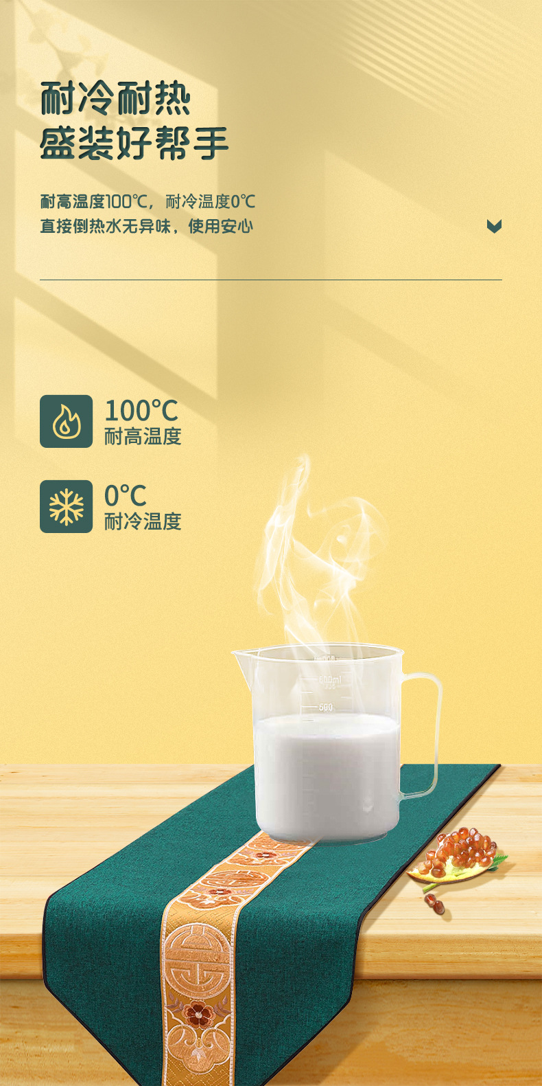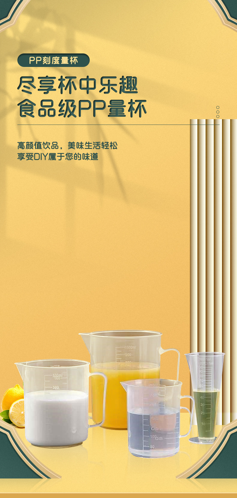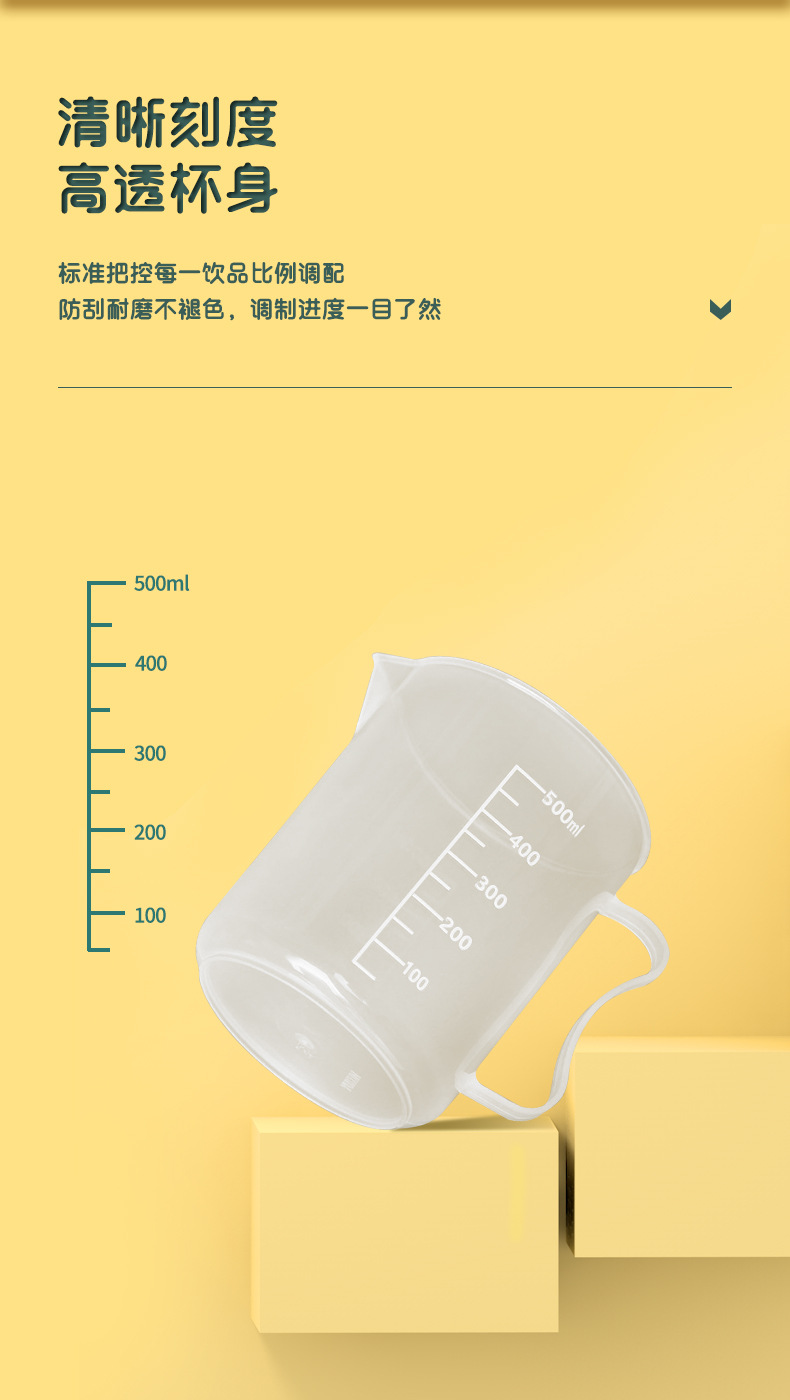 蓋と目盛り付きプラスチック計量カップ、ミルクティーショップ専用プラスチック計量筒、食品グレード家庭用ミリリットルビーカー、耐熱性