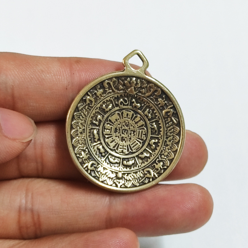 創意黄銅九宮八卦ブランドの十二生肖のキーホルダーはdiyの縄を掛けて銅器のネックレスのペンダントを飾ります。