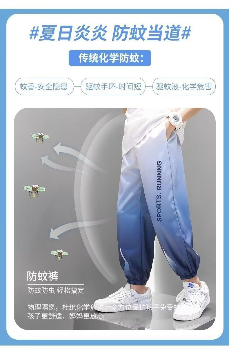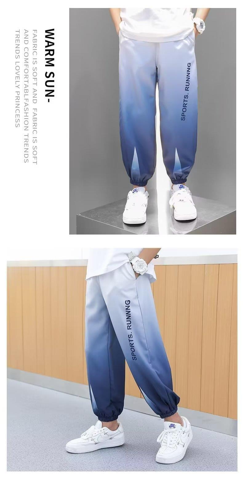 夏の氷の糸の男の子のズボンの格好いい子供のスポーツのズボンの中で大きい子供の薄い金の防蚊の足首のズボンのカジュアルな9分のズボン