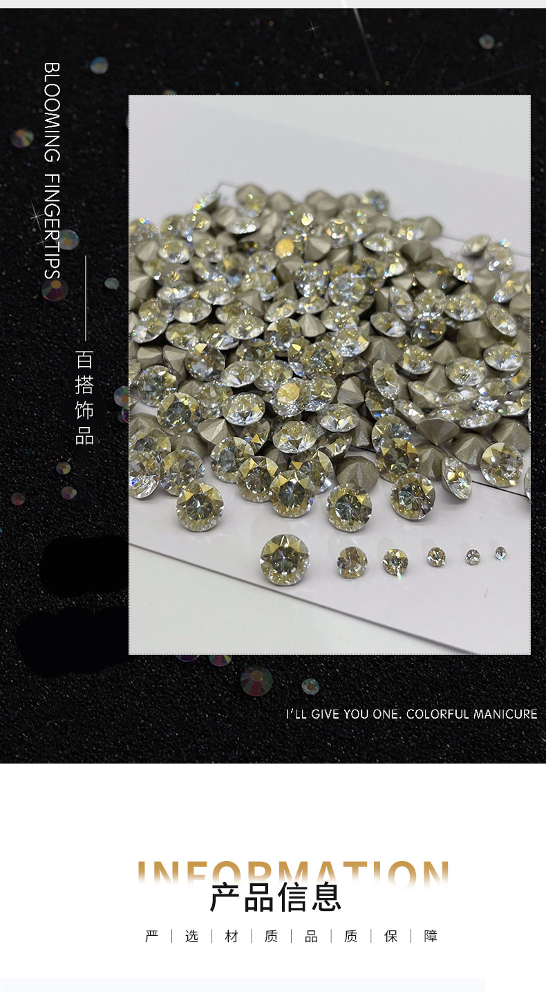 厂家直销星锆合集超闪火彩冰糖肥方千禧蛋尖底美甲钻DIY饰品配件
