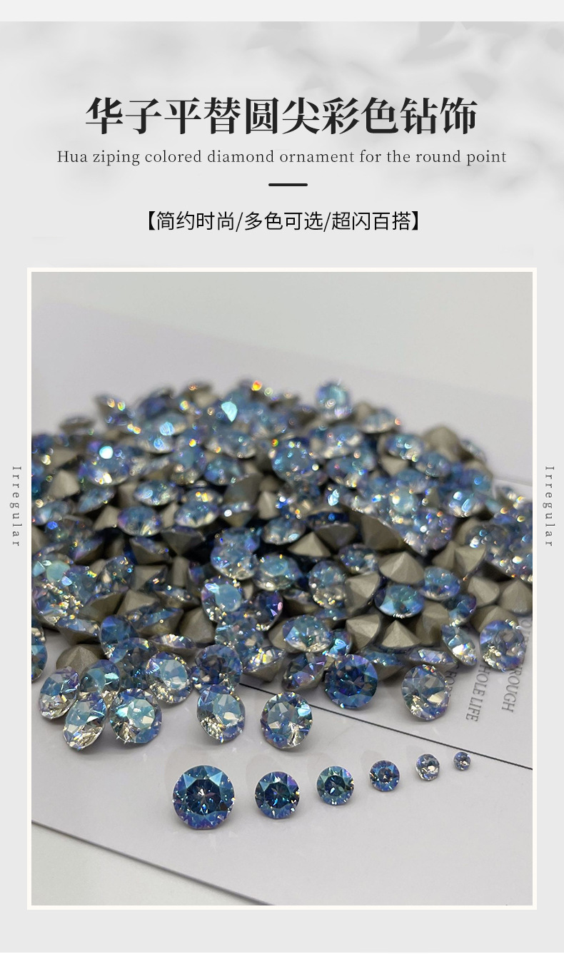 ネイルアート ダイヤモンド ポイント ダイヤモンド 8mm ラウンド ポイント 1:1 Huazi 33 カット スーパーフラッシュ パイル ダイヤモンド コーキング ダイヤモンド カラー