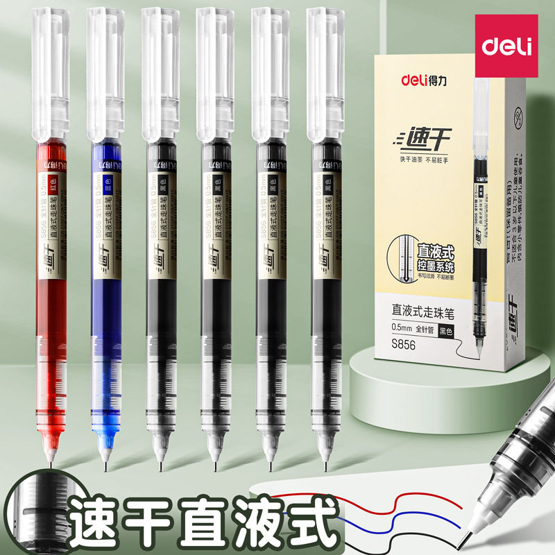 有力文房具直液式ボールペン学生用大容量黒色速乾全針管中性ペン直液ペン