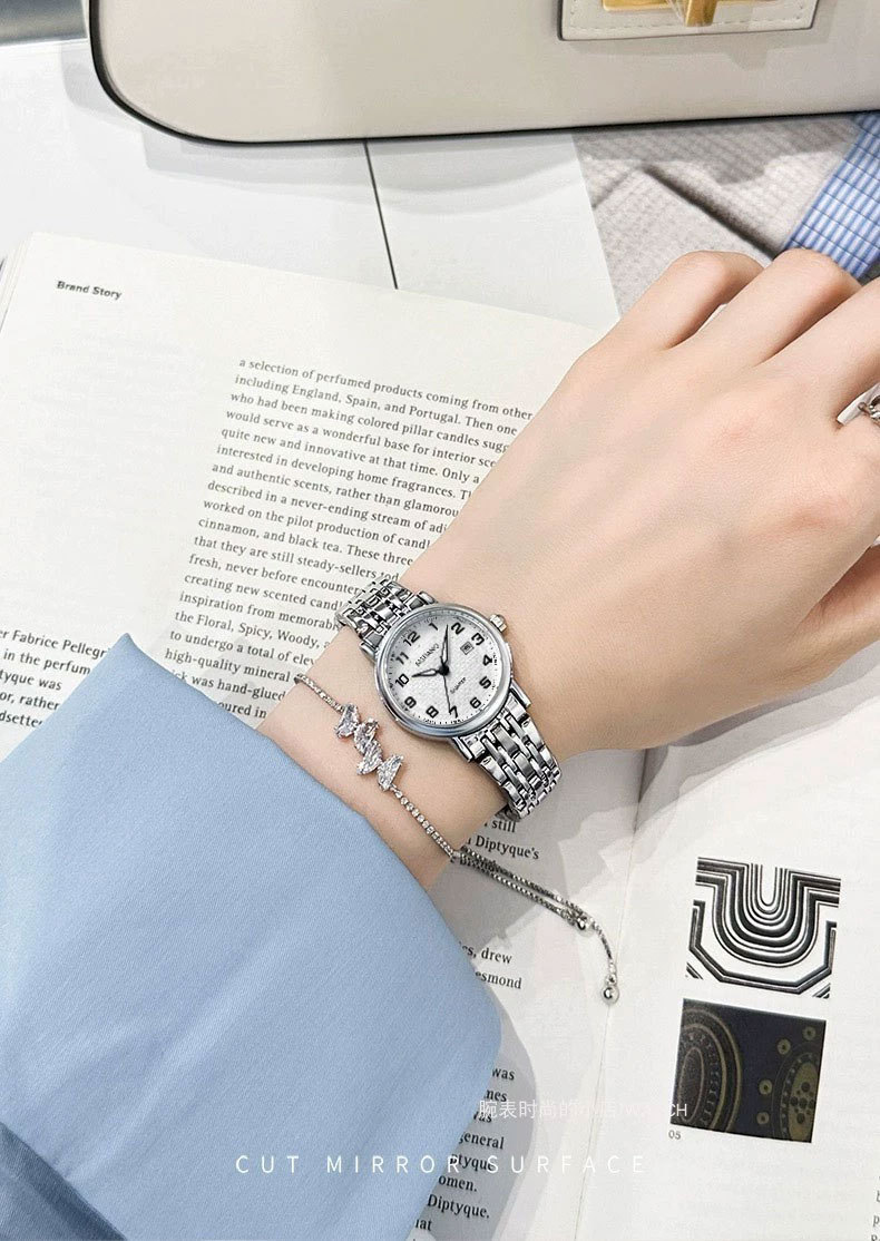 瑞士注册品牌手表女时尚小众轻奢气质钢带复古罗马刻度防水腕表