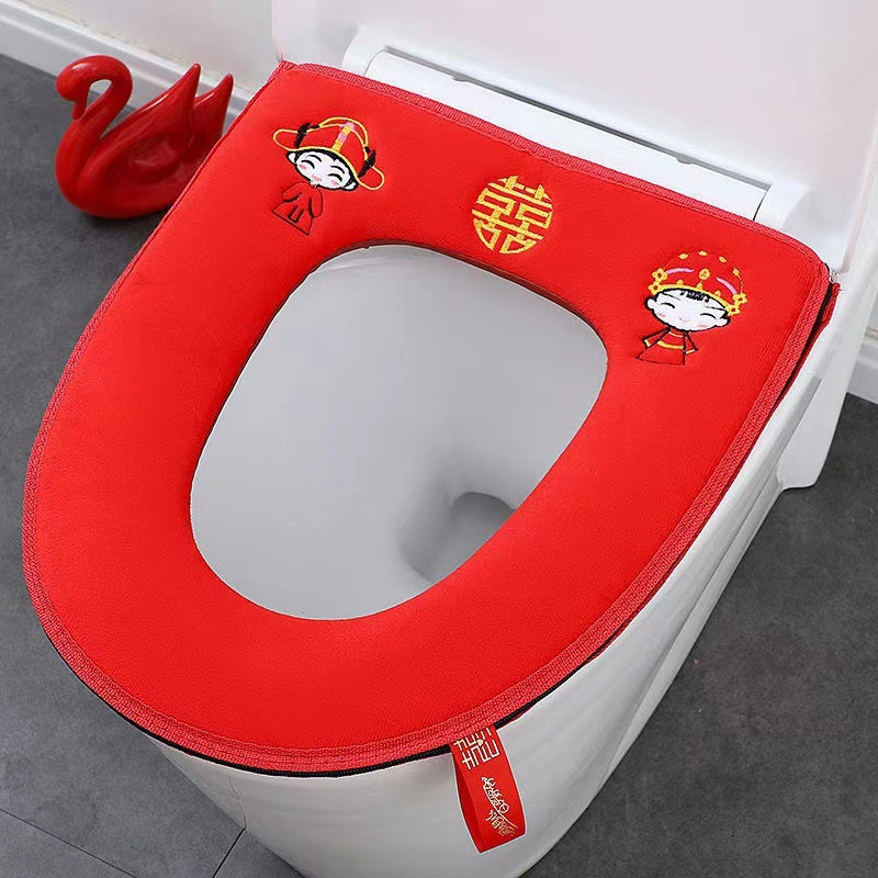 結婚式用の真っ赤なトイレカバー、ハンドル付きジッパー式トイレシート、新婚用品、防水トイレシート、結婚式用品
