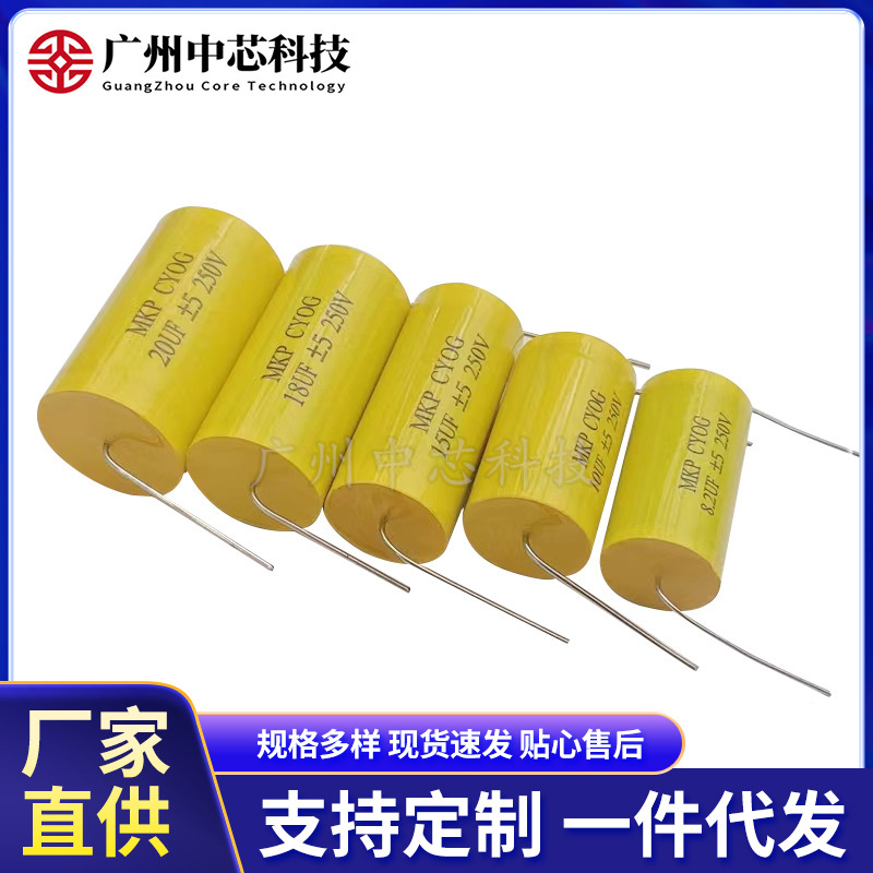 MKP黄平軸方向250V1/2.2/3/4/4.7/5.6/8.2/10/15/47UF無電極コンデンサ