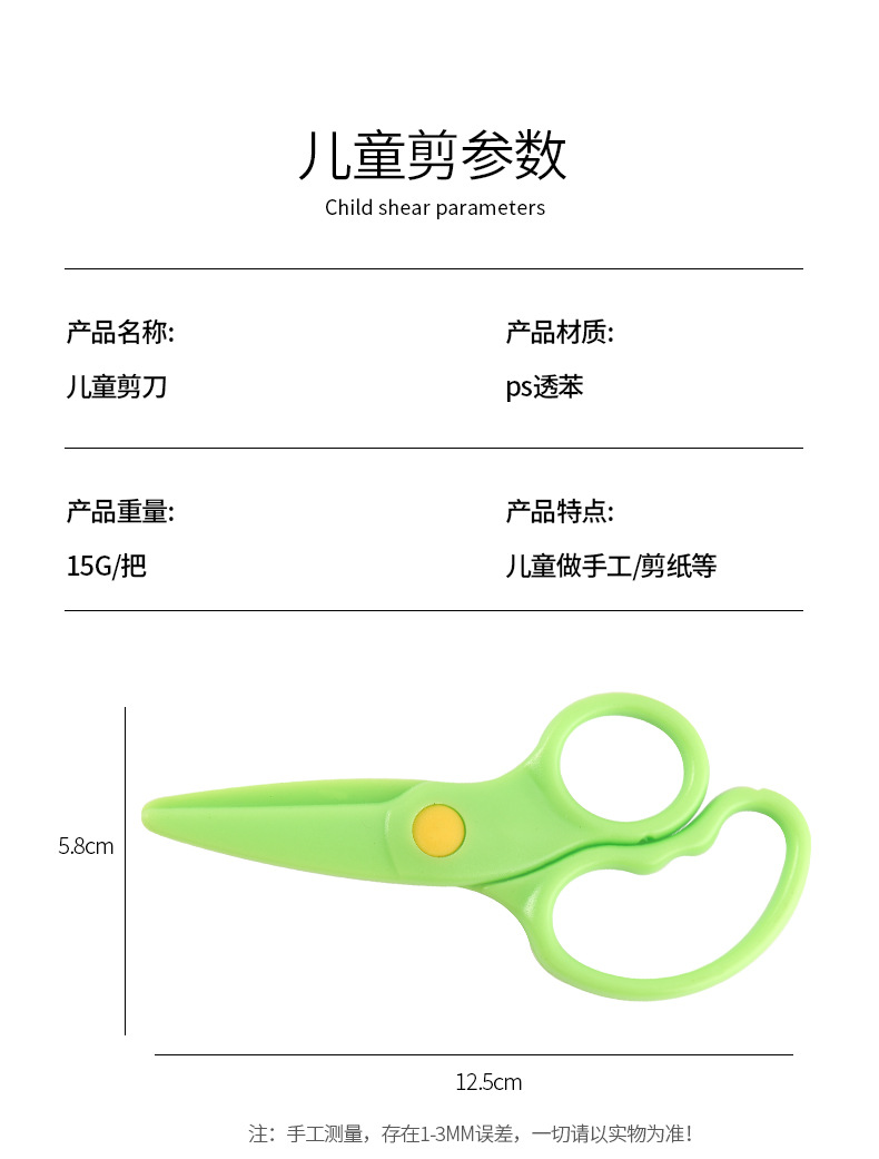 メーカー直供児童カット安全プラスチック学生幼稚園手作り安全ハサミ全プラスチック弾力カット