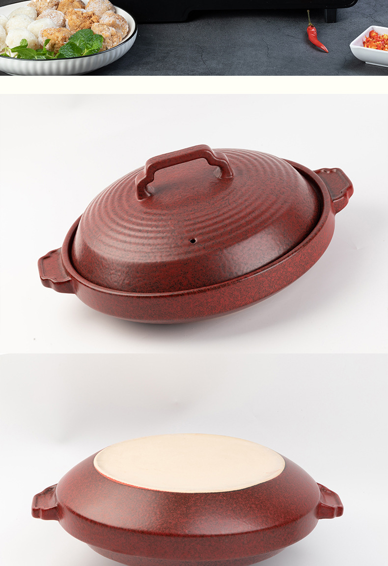 ホテル専用2色陶磁器特浅鍋乾燥鍋大口径商用土鍋明火高温浅口乾燥鍋