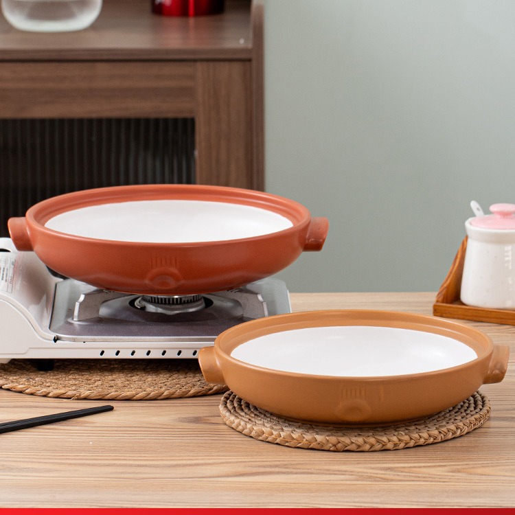 ホテル専用2色陶磁器特浅鍋乾燥鍋大口径商用土鍋明火高温浅口乾燥鍋