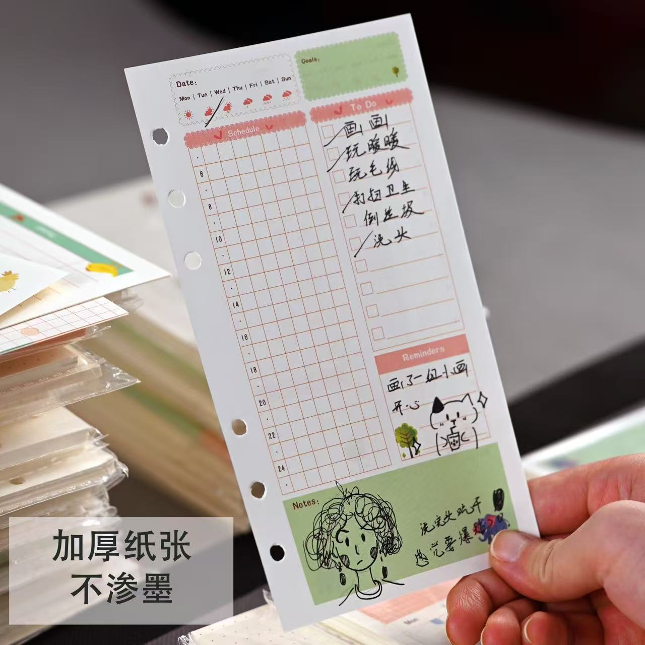 晨实ルーズリーフA5替芯ページA6罫線方眼点線空白週間プランナー6穴ノート道林紙替芯