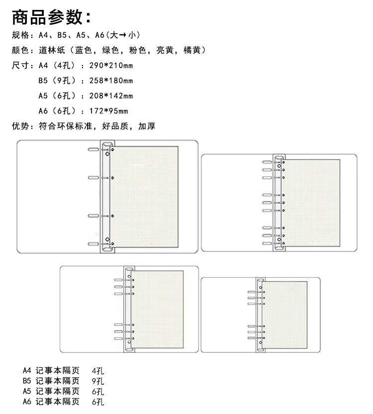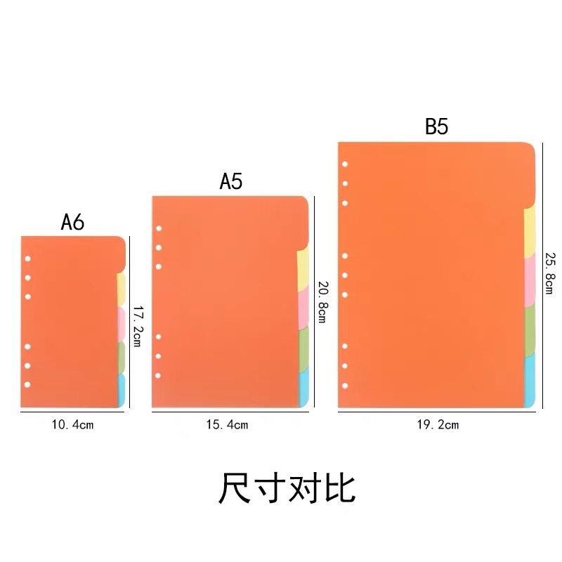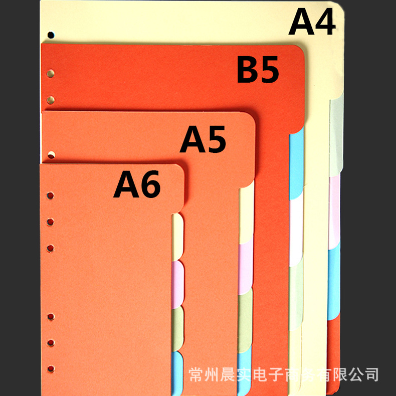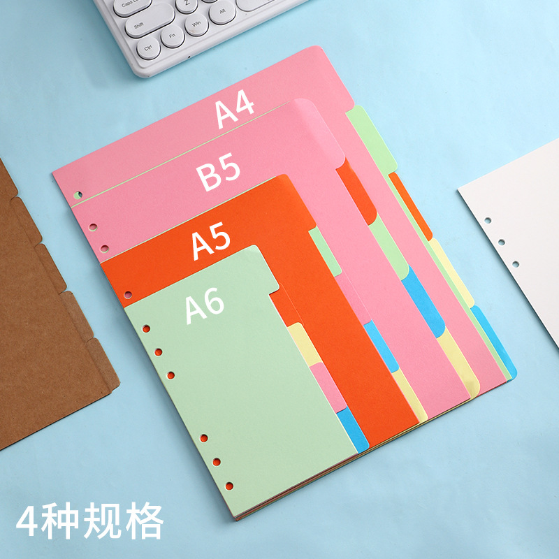 A5 a6手帐カラー纸仕切りページ6穴バインダー替芯手帐インデックスペーパーB5メモ帐9穴仕切り板