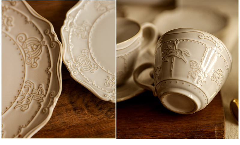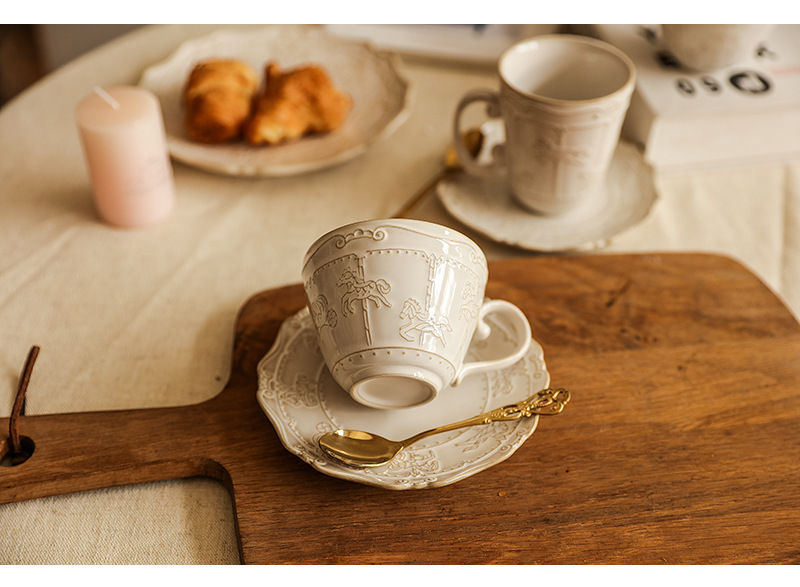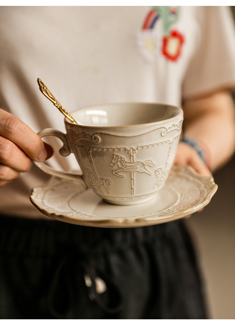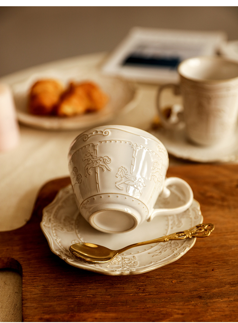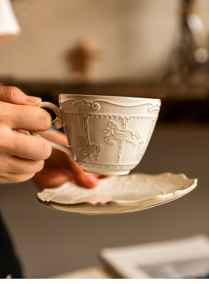 フランス式レリーフレトロ窯変回転トロイの木馬陶磁器コーヒーカップ皿昼寝カップ皿プルカップマグカップ