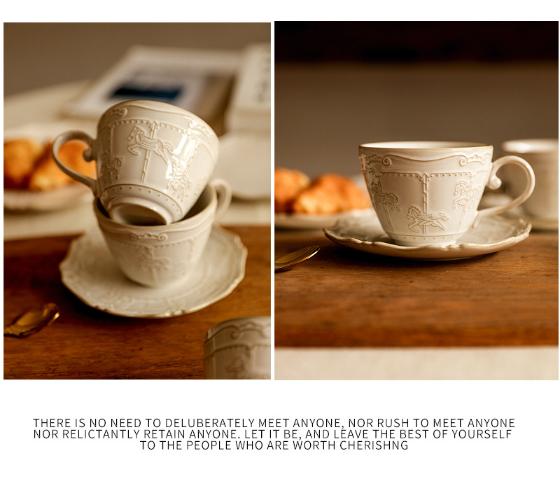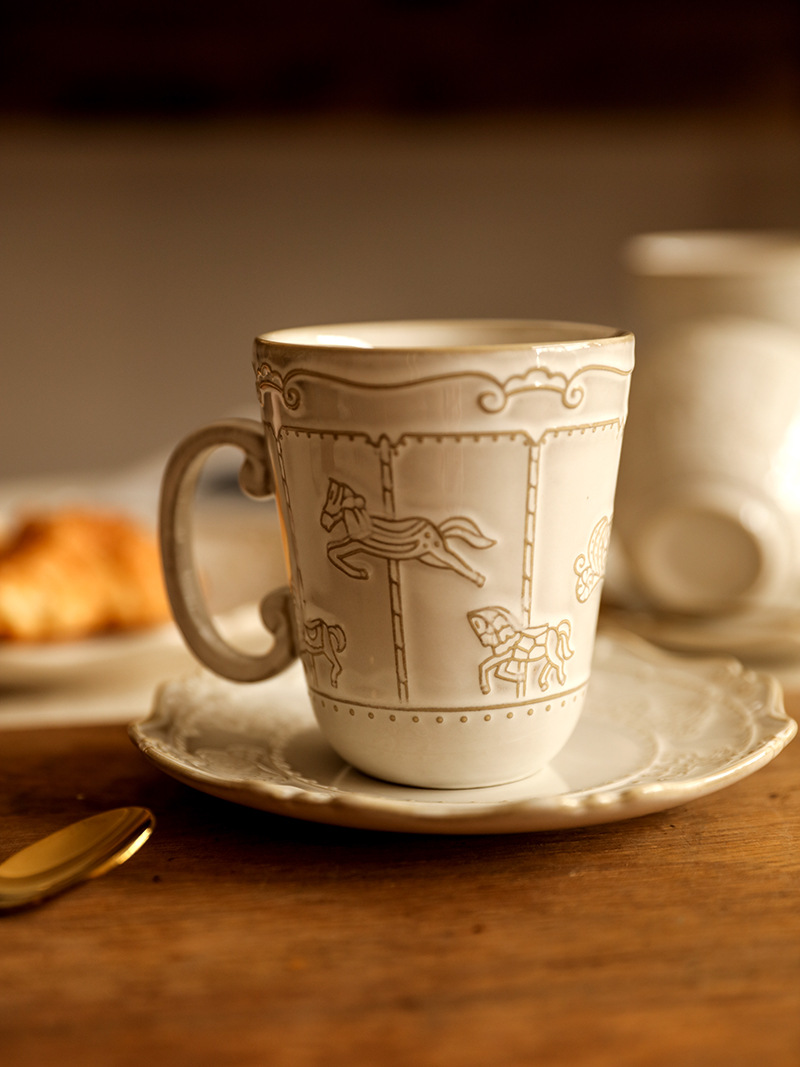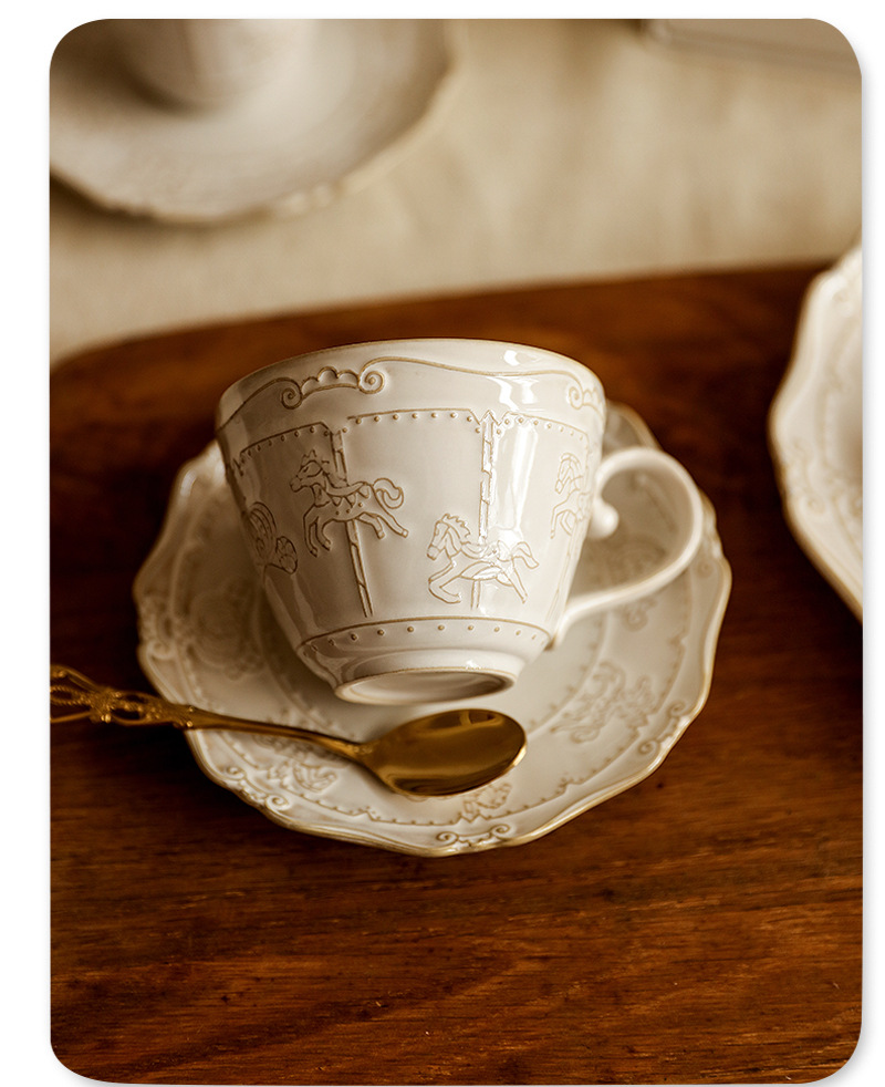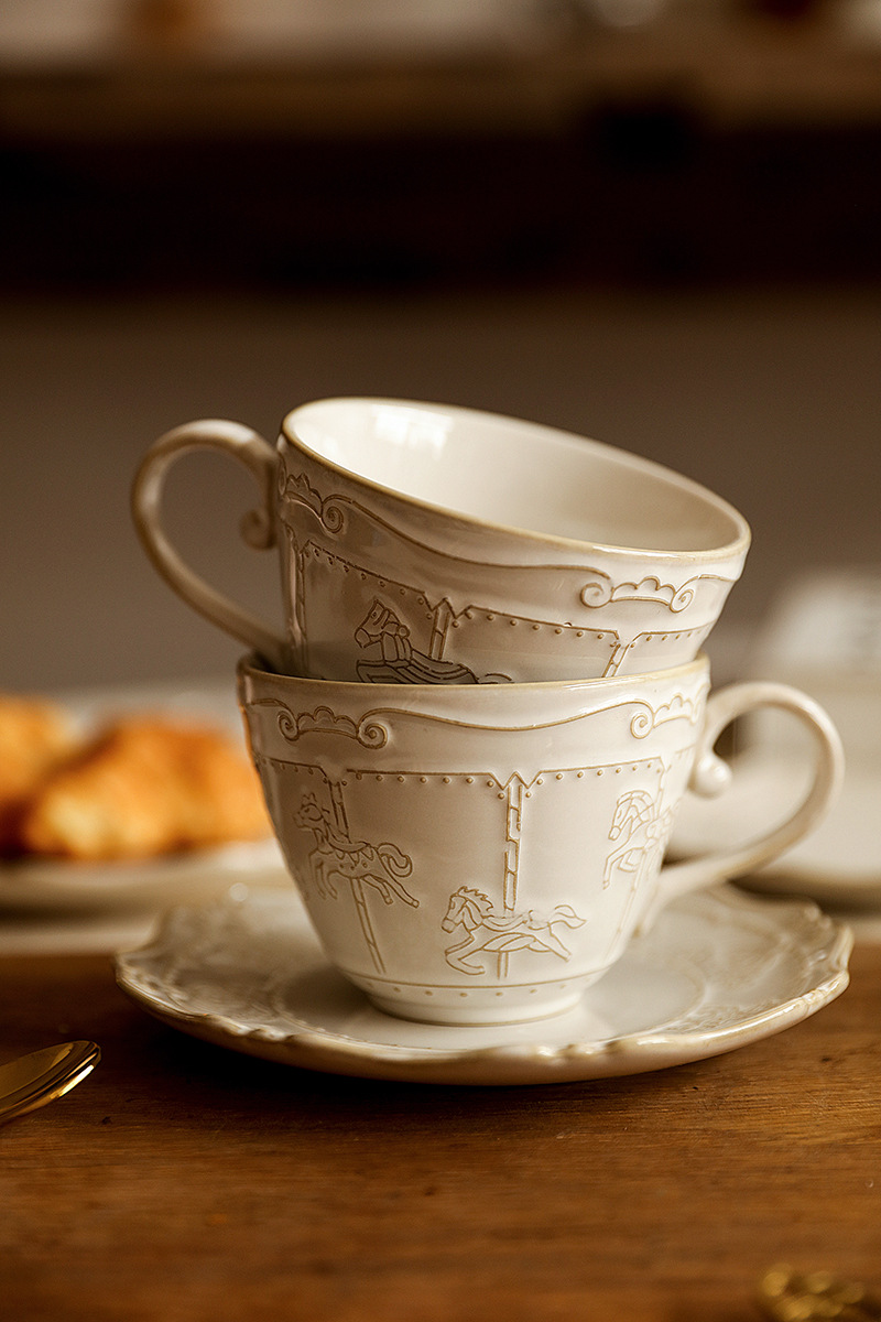 フランス式レリーフレトロ窯変回転トロイの木馬陶磁器コーヒーカップ皿昼寝カップ皿プルカップマグカップ