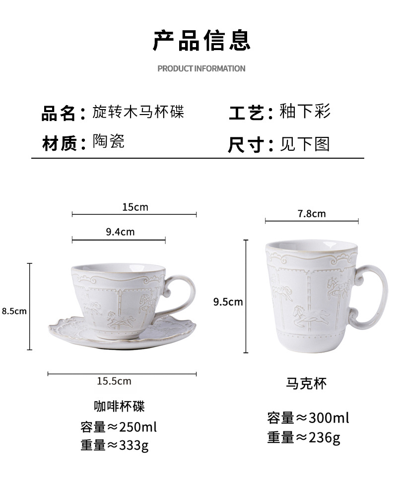 法式浮雕复古窑变旋转木马陶瓷咖啡杯碟下午茶杯碟拉花杯马克E18