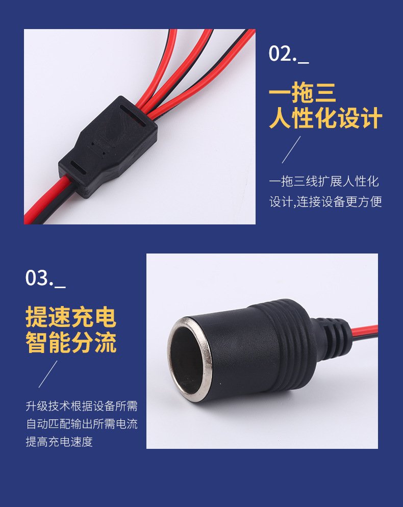車の中のシガレットの注文器は3つの12v-24vの大きさの車のシガレットの注文器の1分3車のシガレットの接続線です。