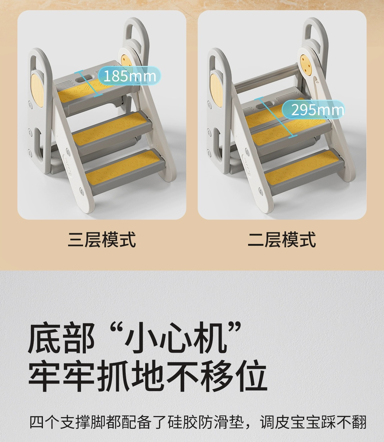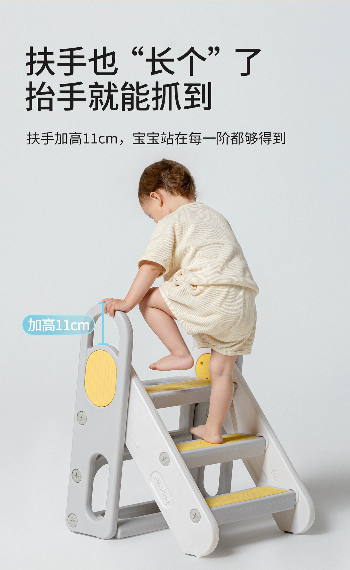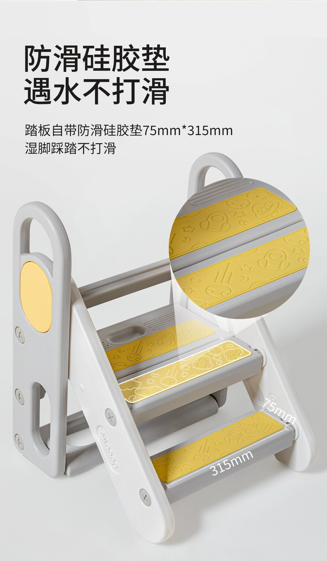 マンロン安全手すり付き三段踏み台、保護型抱っこ式学習タワー、ピーナッツ型伸縮式踏み台