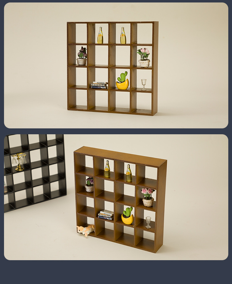 ドールハウスdollhouseミニ家具1:12ポケットモデル物置スタンド16格ディスプレイキャビネット