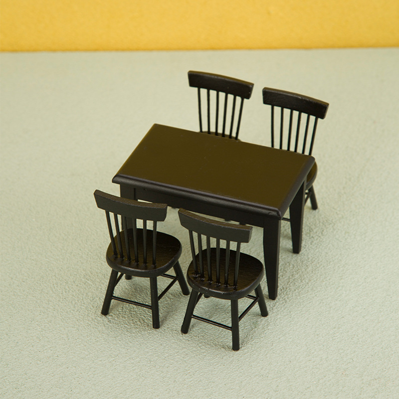 1:12人形屋diy内装ミニシーンテーブルモデル黒ポケットレストラン用竹糸椅子セット