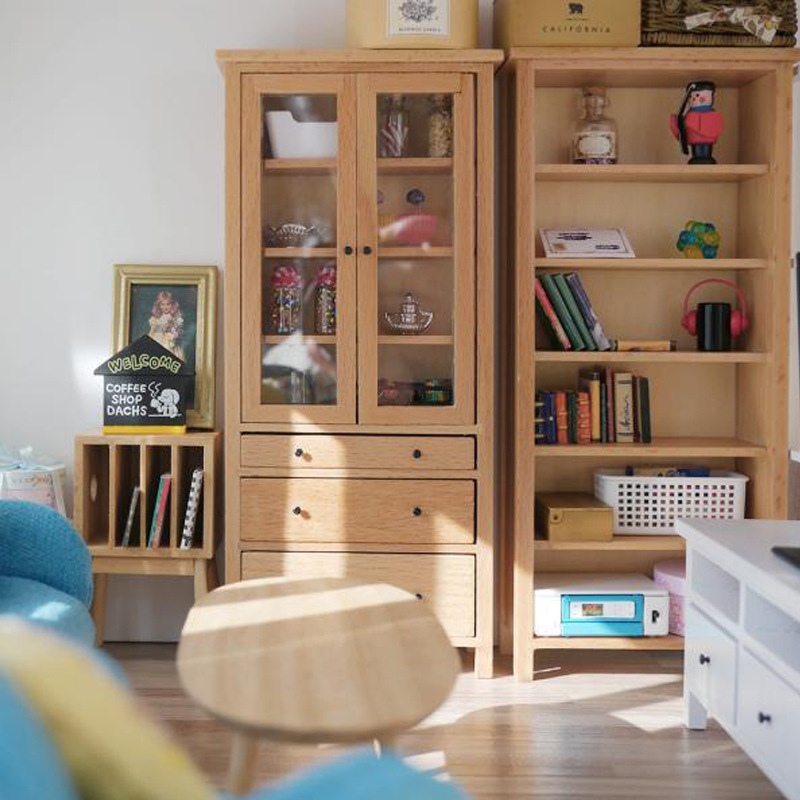 10分12分ミニ家具縦型収納キャビネット本棚引き出しキャビネットミニチュア木製撮影小道具ドールハウス
