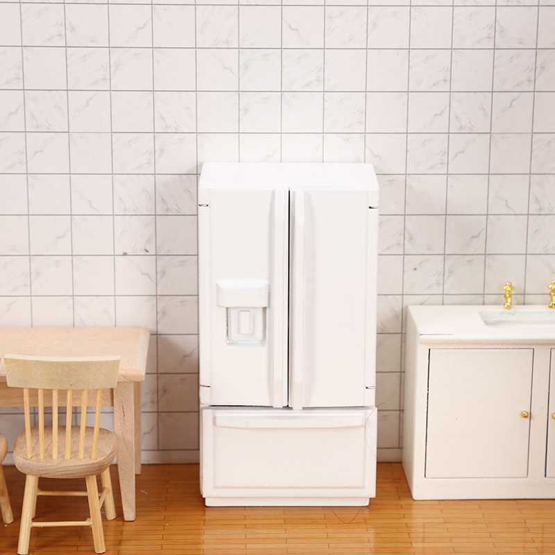 1:12人形屋ミニ家具ミニチュアモデルキッチンシーンおまままごとおもちゃ白冷蔵庫