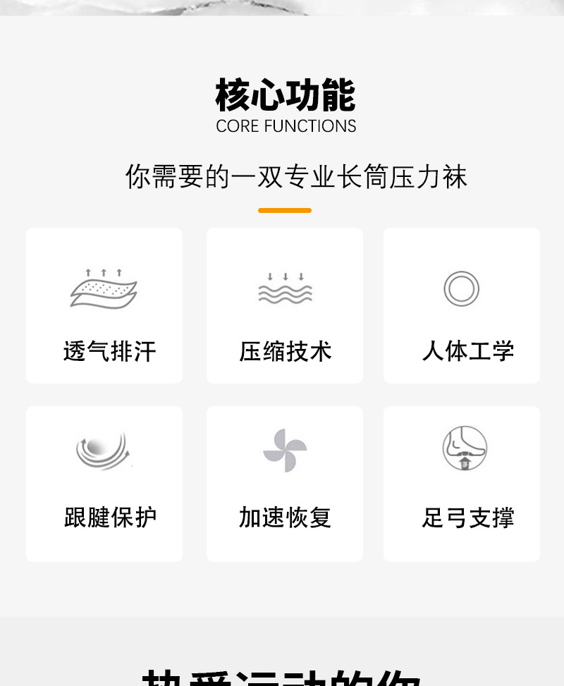 アマゾンクロスボーダーストッキング純色スポーツ圧力靴下弾力靴下銅イオン圧縮靴下アウトドア騎行靴下