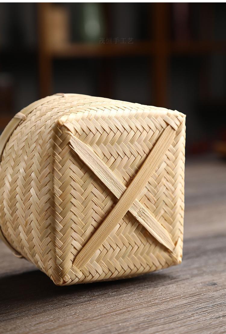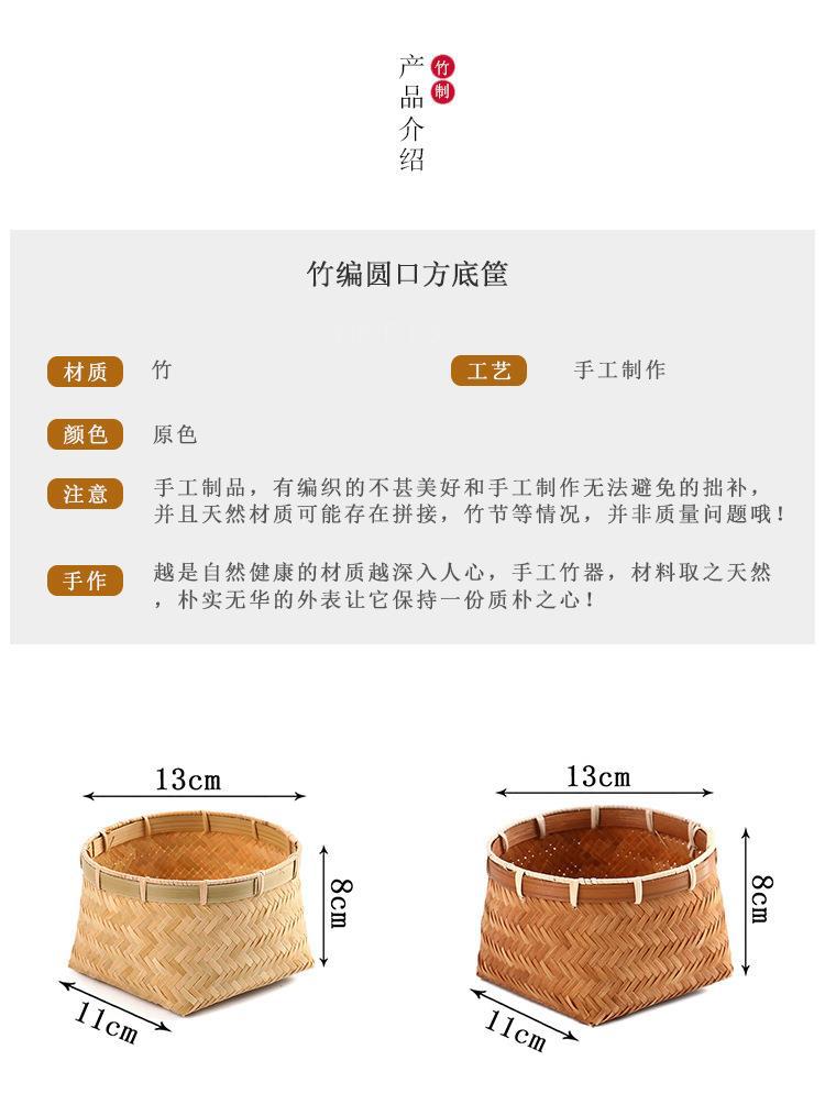 天然手作り竹かご、正方形の底と丸い口の竹かご、スナック収納バスケット、家庭用レトロな小さなバスケット