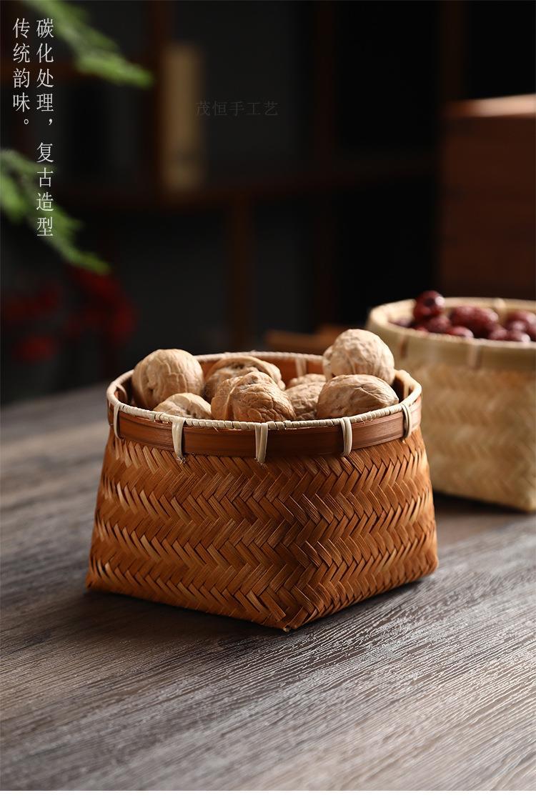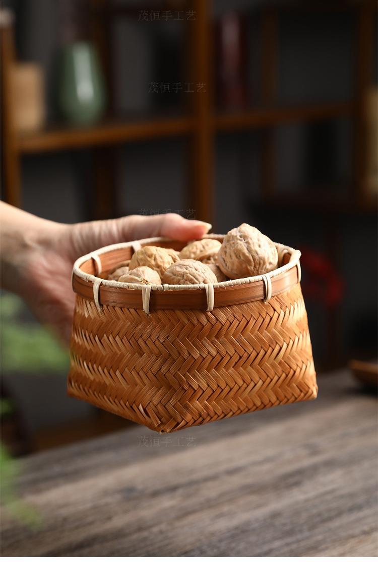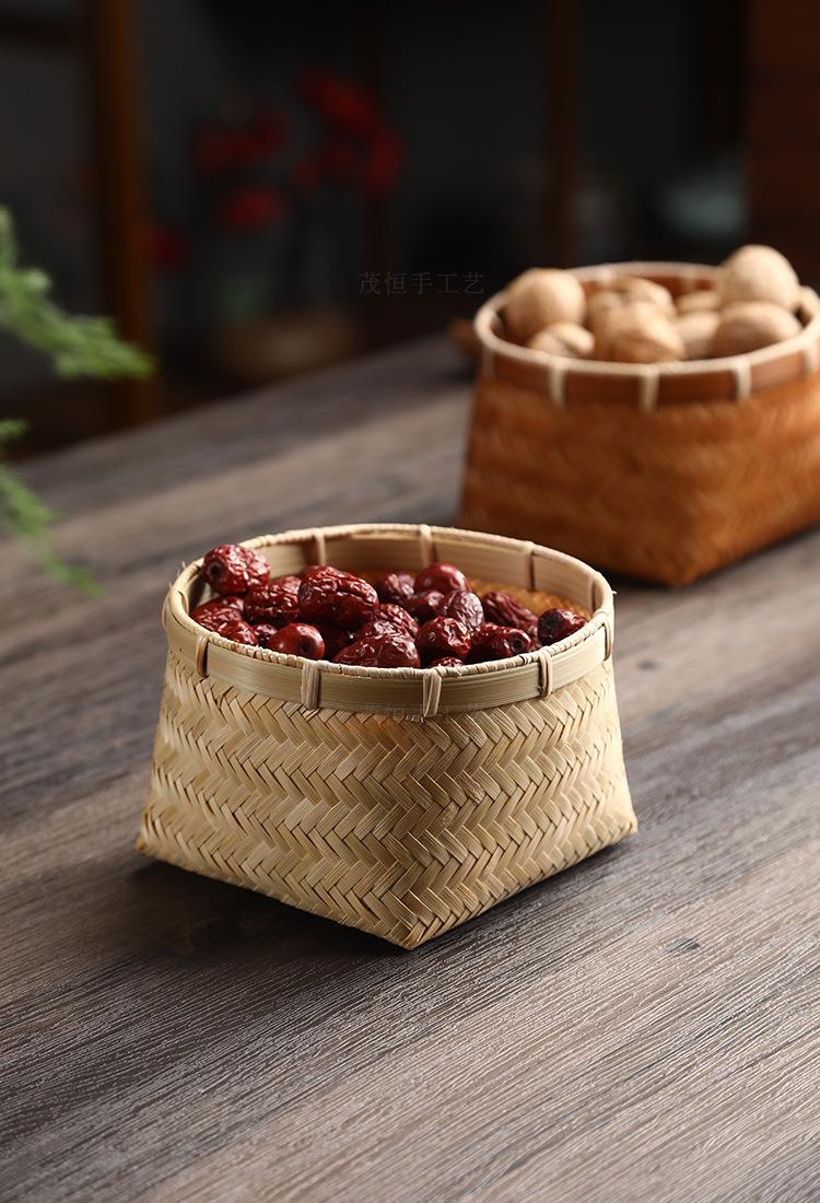 白金芸竹製品手作り竹編みかごドライフルーツ箱家庭用デスクトップ中国式レトロ竹かごスナック果物かご